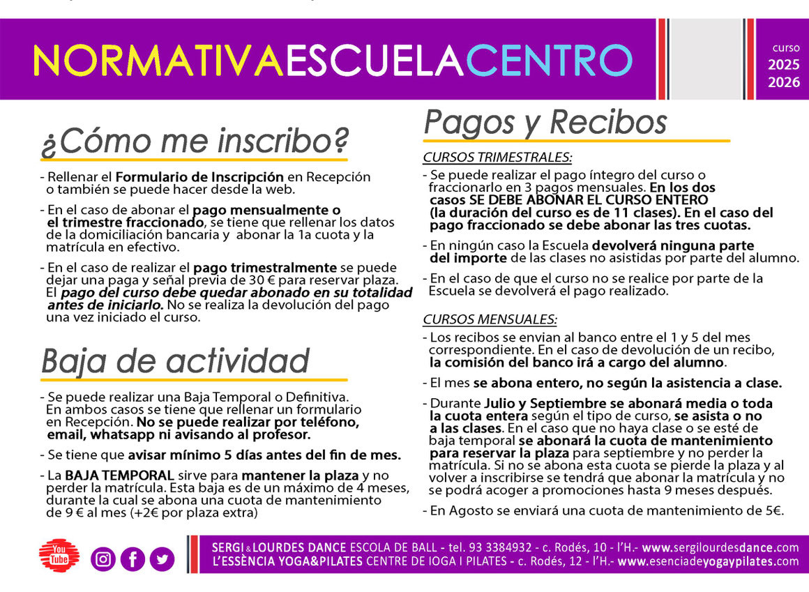 Puedes asistir a todas las actividades del cuadro de horarios por una única cuota mensual y los días que quieras a la semana ... baila, diviértete y a la vez haz ejercicio!!