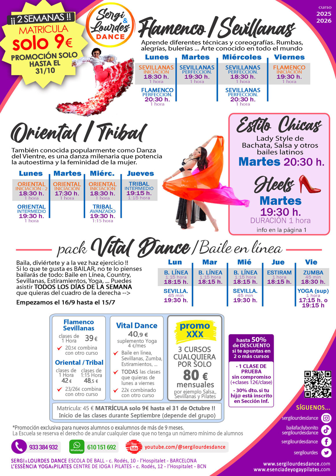 Los Lunes hay dos grupos de Bailes en Línea: uno para "novatos" y otro para "veteranos" en dos aulas por separado y los Viernes se puede hacer 1 hora de Yoga: a las 17:15 o a las 19:15 (hay que reservar plaza).
